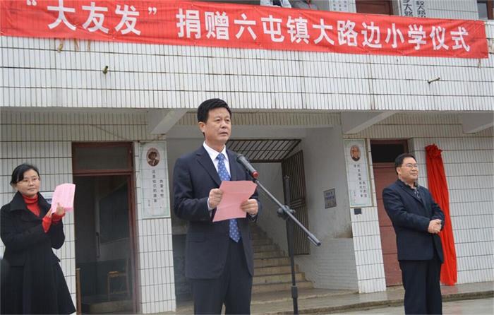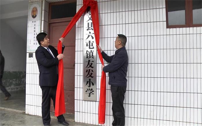 17日下午,全体参会人员前往修文县六屯镇参加捐赠挂牌仪式,受到了修文县县委组织部部长、教育党工委书记谢国波,县教育局局长袁曜,六屯镇镇委书记杨梅,镇长汤锡宏,六屯镇中心小学校长代传阳,大路边小学校长班正富以及学校全体师生的热烈欢迎。今年“大友发”向六屯镇大路边小学捐赠70万元,用于修建学生餐厅、电教室,添购教学设备等。经修文县教委批准,修文县六屯镇大路边小学校名更改为“修文县六屯镇友发小学”。尹九祥总裁在捐赠仪式上致辞提出,“大友发”愿尽微薄之力支持民族教育事业的发展,让更多的老师和孩子收获人生中的“小幸福”,为学校的发展注入新活力。随后,李茂津董事长和修文县县委组织部部长、教育党工委书记谢国波共同为新校牌揭牌。